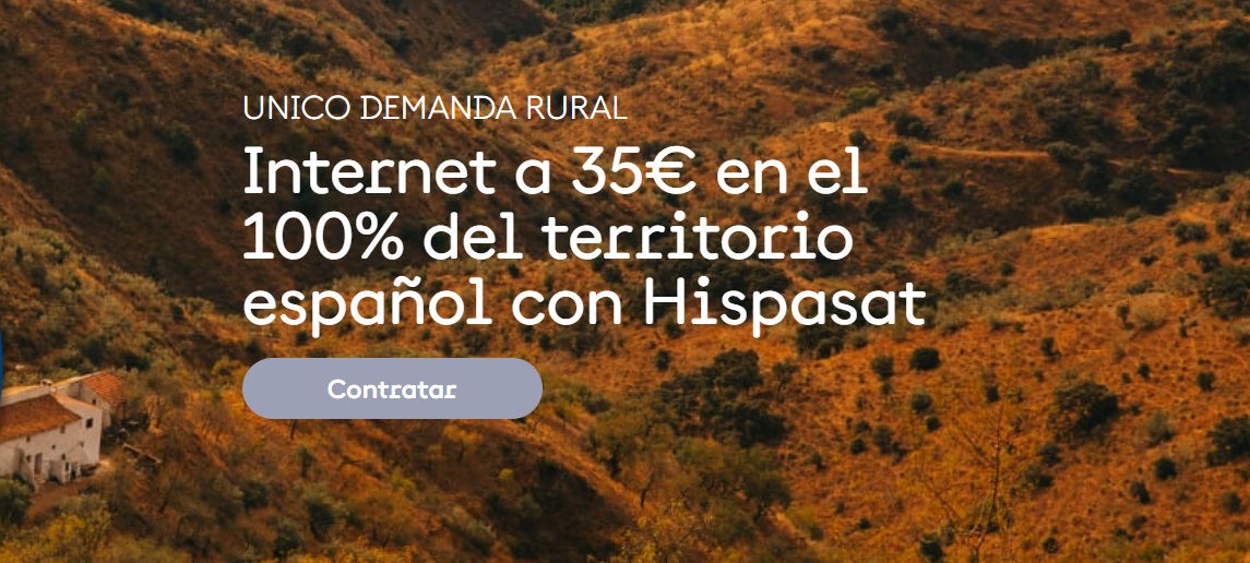 El servicio ÚNICO DEMANDA RURAL ofrece Internet vía satélite en el 100% del territorio español a un pecio de 35€ al mes.